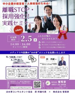 そんな悩みに弊社の実例と、ほめ育グループ代表の原 邦雄氏の本音でお話しする2時間です。