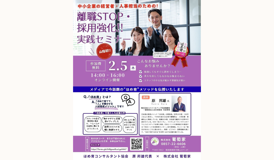 そのキックオフして2026年2月5日(木)にオンラインで『ほめ育実践セミナー』を開催します!